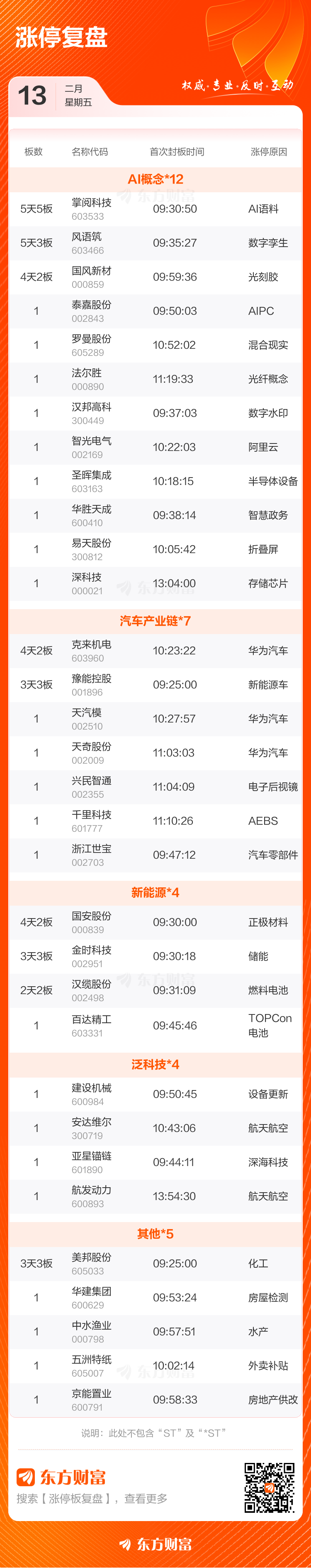 2月13日涨停复盘:46股涨停 掌阅科技5天5板