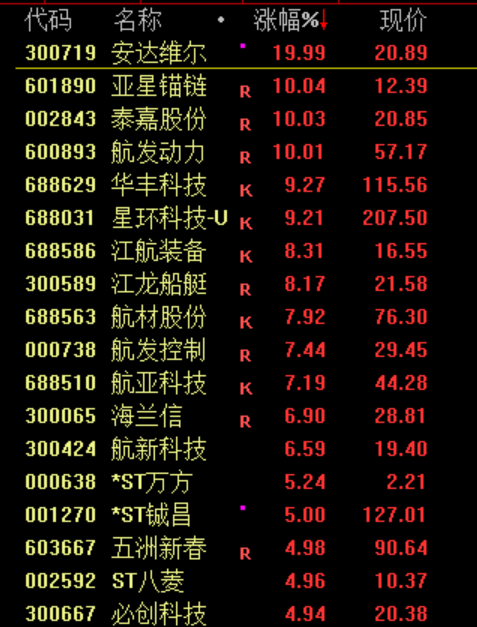 军工板块逆市走强,安达维尔、亚星锚链、航发动力等涨停。