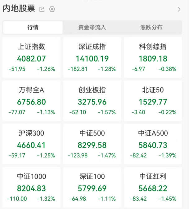 2月13日,A股三大指数震荡调整,均跌超1%。截至收盘,沪指跌1.26%,深成指跌1.28%,创业板指跌1.57%。科创综指微跌0.38%。