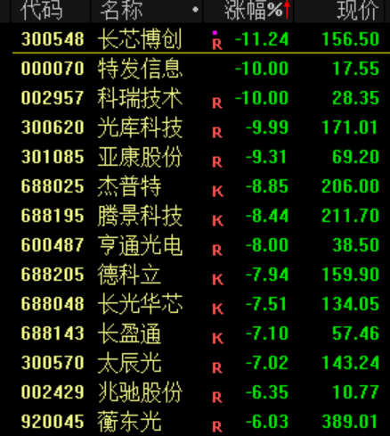 下跌方面,CPO等算力硬件股调整,长芯博创跌超10%。