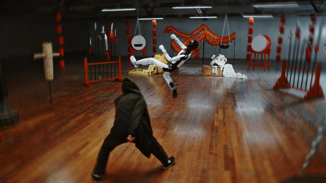 在官方发布的宣传视频中,远征A3以极具观赏性与爆发力的表现,彻底打破全尺寸人形机器人量产困难、动作简单的刻板印象,重新定义了全尺寸人形机器人本体能力和运动智能极限。练功房里,远征A3与神秘黑衣人师父对招,升龙拳、连续飞踢、空中漫步、摸地旋风一气呵成。