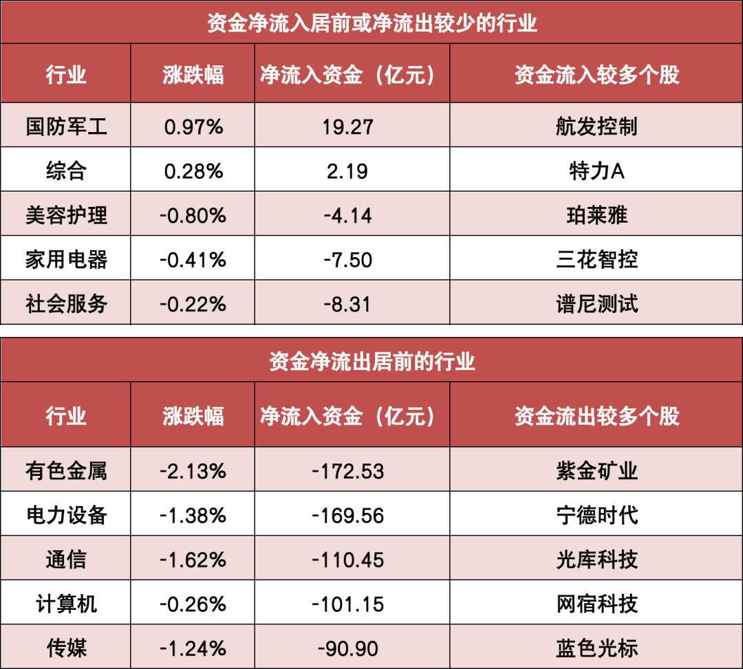 3.国防军工等行业实现净流入