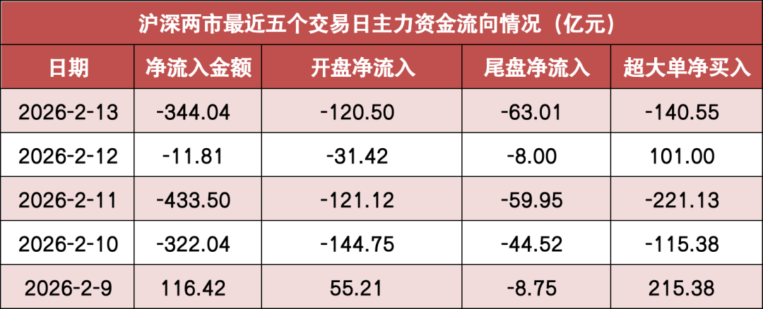 今日沪深两市主力资金开盘净流出120.50亿元,尾盘净流出63.01亿元,两市全天主力资金净流出344.04亿元。