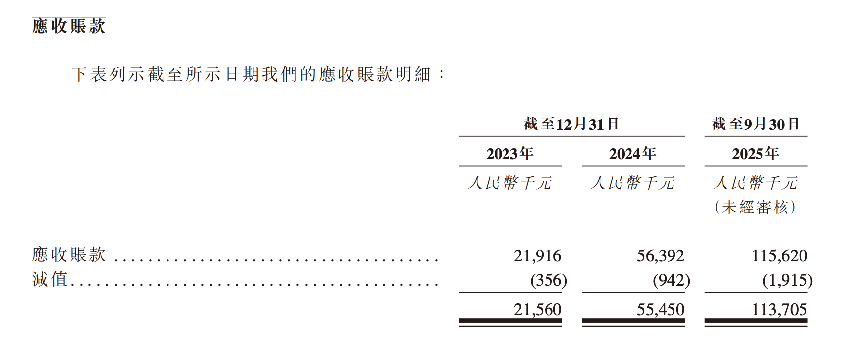 然而,第零智能的应收账款的增速却要明显快于营收增速。公司应收账款从2023年底的2156万元,增加156.9%至2024年底的5545万元,至2025年三季度末,该指标进一步增加104.9%,达到1.14亿元。公司称主要由于客户数量增长,导致结算期间的应收账款增加。