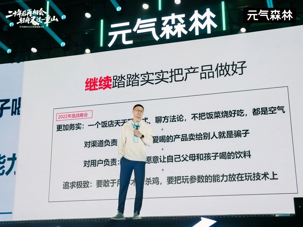 他提到,饮料行业链条长、环节多。任何环节的失准(预算失控、产品泛滥、库存积压)都会带来系统性风险。“我们深刻体会到,必须坚持 ‘少即是多,慢就是快’的朴素真理,聚焦资源,稳扎稳打。这是生存和发展的底线思维。”唐彬森写道。