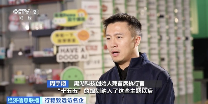 黑湖科技创始人兼首席执行官周宇翔:“十五五”的规划纳入了这些主题以后,会让很多新的创新更快发生。中国有500万家不同的工厂,我们现在才做了500万家里面的3万家,对明年、后年乃至5到10年的增长非常乐观。