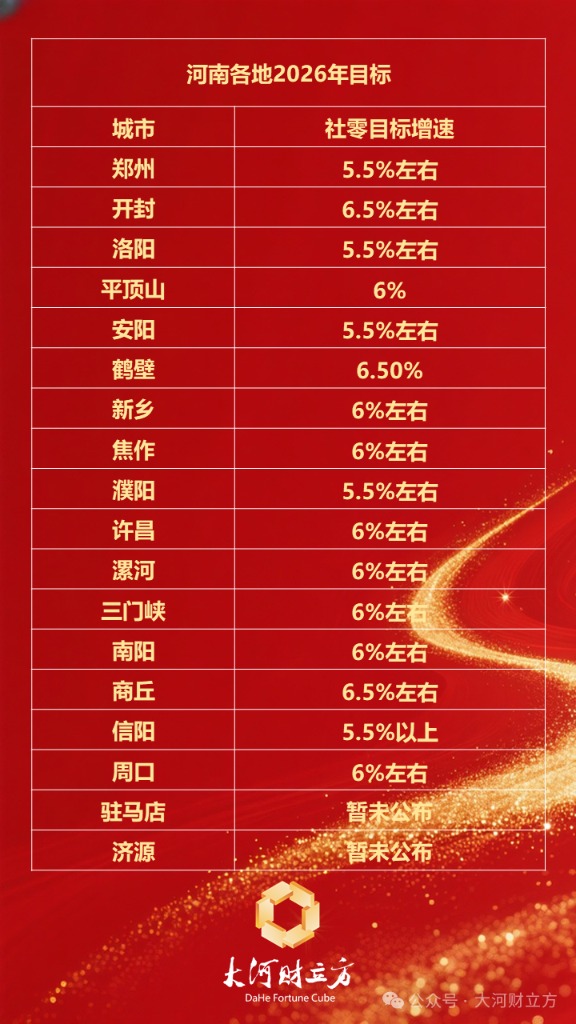 另外,各地在制定2026年目标任务时,除GDP增速外,往往还设定了固定资产投资增速、规上工业增加值增速、社会消费品零售总额增速等目标。