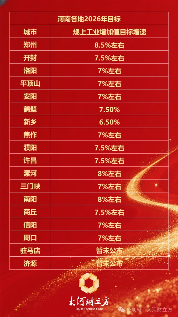 漯河和南阳均将增速设在8%左右。南阳作为省域副中心城市,2025年GDP稳居全省第三,工业投资增长16.2%。2026年,南阳继续锚定提振投资,将“激活消费和提振投资双轮驱动放在首位”。