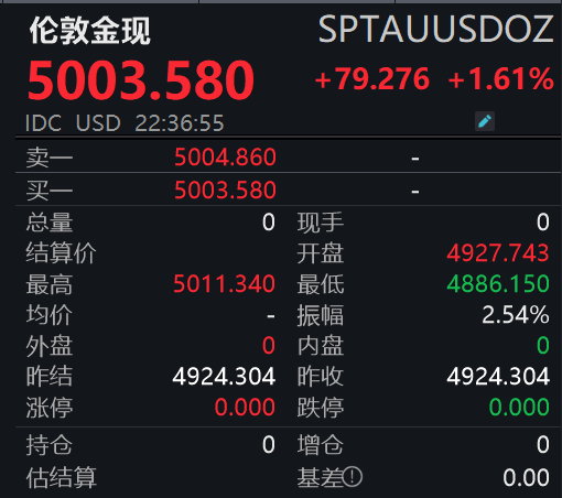 现货黄金重新站上5000美元/盎司