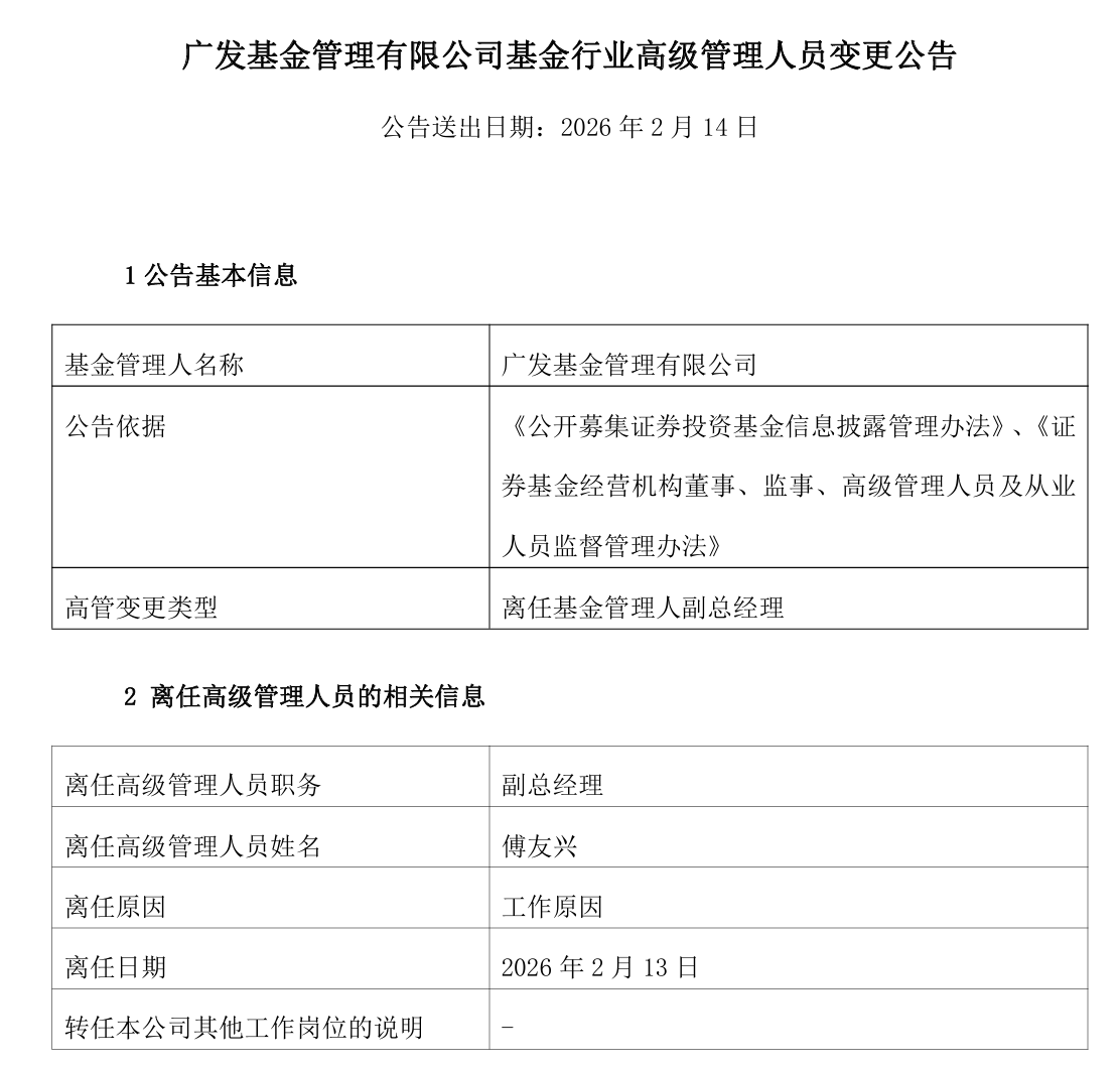四是投研条线也出现新变动,知名基金经理傅友兴自2月13日起离任广发基金副总经理。