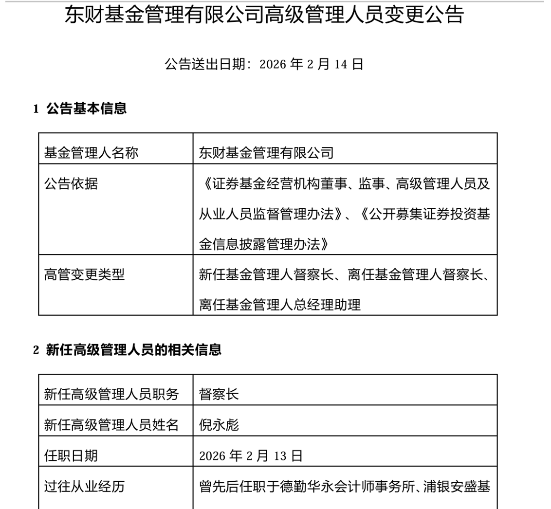 三是东财基金迎来新任督察长,原公司总经理助理倪永彪自2月13日转任公司督察长。