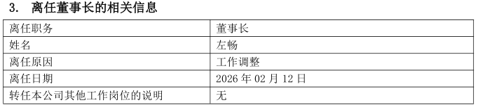 根据公告,离任原因为工作调整,未有转任其他工作岗位说明。本次人事调整自2月12日起正式生效,并按有关规定履行备案手续。