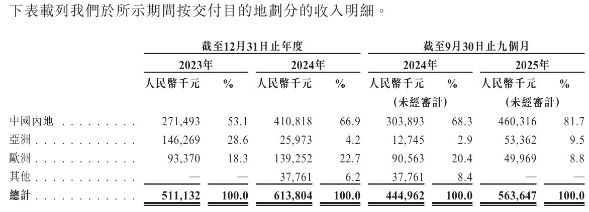 然而后续数据却呈现明显回落。2024年海外收入占比降至33.1%,2025年前三季度进一步下滑至18.3%,对应收入规模收缩至1.03亿元。这种占比急速下降与招股书中反复强调的全球化愿景形成了强烈对比。