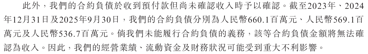 合同负债余额从2023年底的6.6亿元下降至2025年三季度末的5.37亿元。在非标系统集成业务中,合同负债是未来收入的重要前置指标,其下降不仅影响当期现金流结构,也在一定程度上削弱了后续收入的可预测性。对投资者而言,合同负债的变化,往往比单期利润更能反映未来订单的确定程度。在港股审核与定价语境下,订单可见性本身就是判断增长确定性的关键变量。合同负债的下滑,将直接影响市场对公司未来收入稳定性的判断。