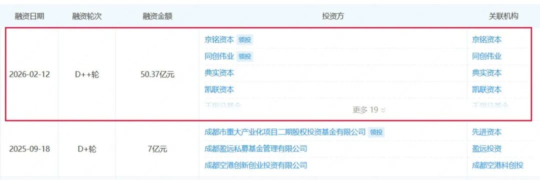 此轮由同创伟业、京铭资本联合领投,甘泉资本、成都产投等继续追投,典实资本、龙芯创投等十余家新机构入局。