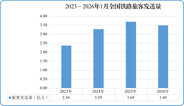 据国家铁路局消息,2026年1月份,全国铁路货运量持续增长,铁路建设高效推进。受春节日期影响,1月份旅客发送量同比下降。