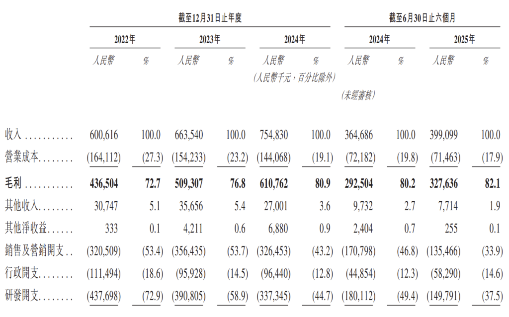 群核科技2022年至2025年6月业绩概要。来源:招股书