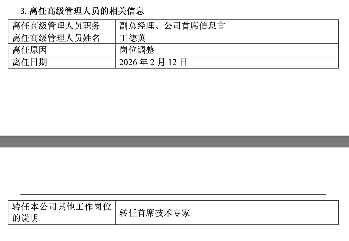 博时基金则完成了首席信息官岗位的内部调整。该公司原副总经理、首席信息官王德英因岗位调整,于2月12日离任上述职务,转任公司首席技术专家,继续深耕技术领域;公司董事长张东代任首席信息官职务。