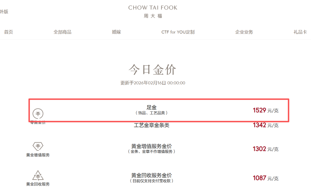 另外,国内金饰价格仍处于高位。截至发稿,周生生足金饰品价格为1534元/克;周大福、老庙黄金为1529元/克。