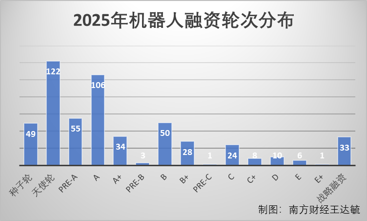 从融资轮次结构来看,这一特征表现得尤为明显。以2023-2025年为统计周期,机器人赛道融资轮次主要集中于种子轮、天使轮及A轮阶段,约七成融资事件发生在这一区间。