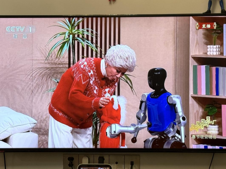 其中,四个步履精准的双足人形机器人和一个仿生人形机器人,与著名艺术家蔡明配合完成了时长十二分半的小品《奶奶的最爱》,这也是人形机器人第一次出现在春晚语言类节目中,这场表演让1996年春晚小品《机器人趣话》中的人形机器人家庭应用场景,在三十年后的马年春晚上落地为现实。