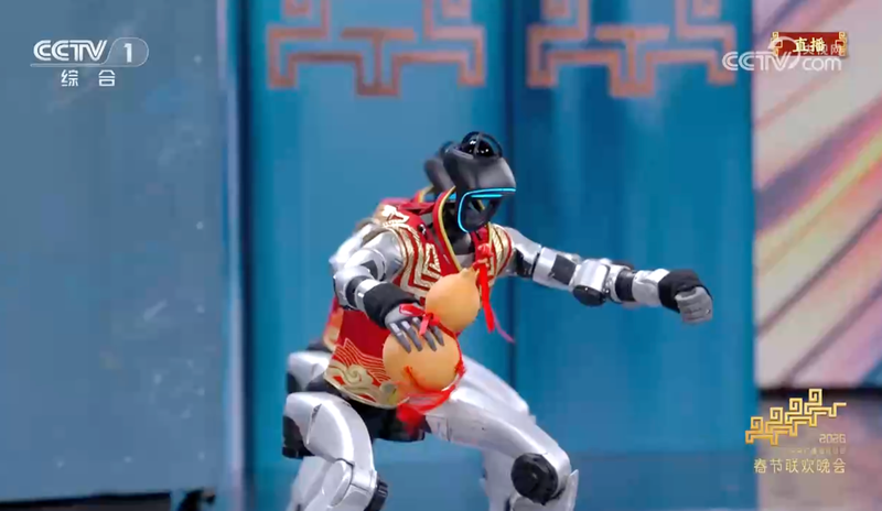 宇树科技多台G1机器人手持葫芦演绎醉拳。央视新闻截图