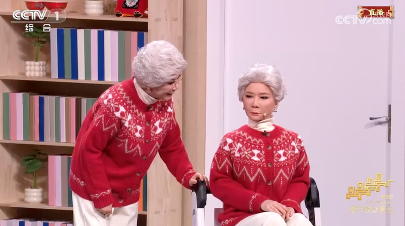 蔡明“同款”仿生人形机器人(右)。央视新闻截图