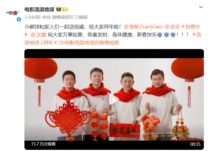 郭帆、刘德华、吴京、沈腾集体出镜拜年!《流浪地球3》官宣定档