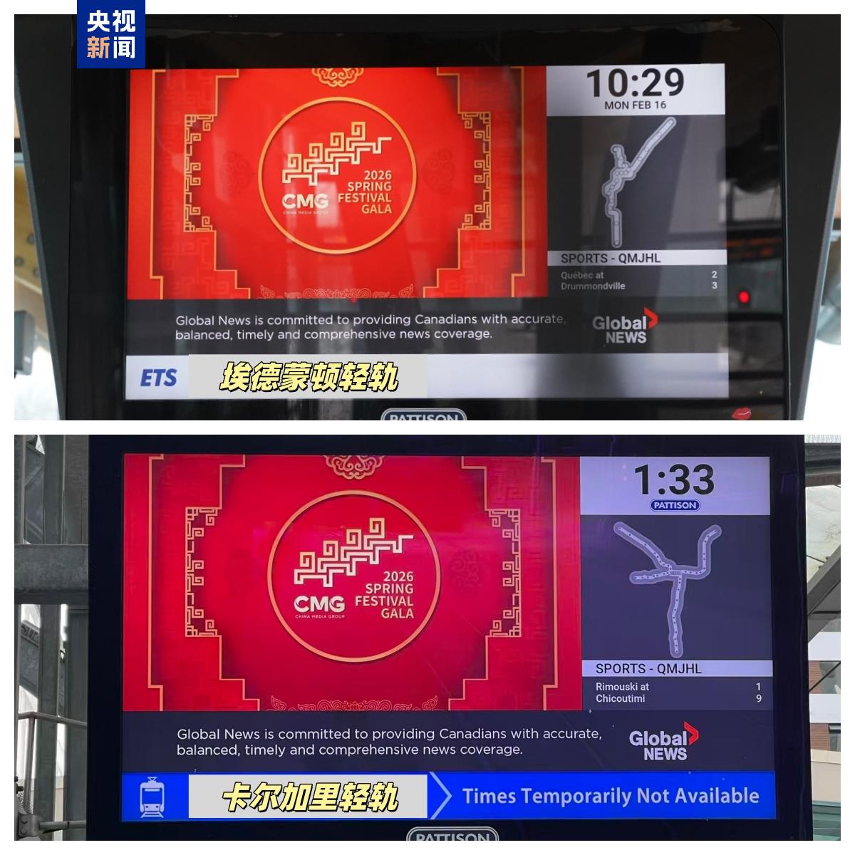 埃德蒙顿和卡尔加里同在加拿大艾伯塔省,埃德蒙顿是该省省会,卡尔加里是加拿大第三大城市。两个城市的轻轨系统,是北美最繁忙的轻轨系统之一。本次宣传片由中国驻卡尔加里总领馆投放,总台春晚宣传片贯穿其中,通过两城轻轨站内近300块屏幕,立体式展现中国的春节、春晚文化。视频在当地时间除夕和初一连续两日播放,预计触达受众约80万人次。