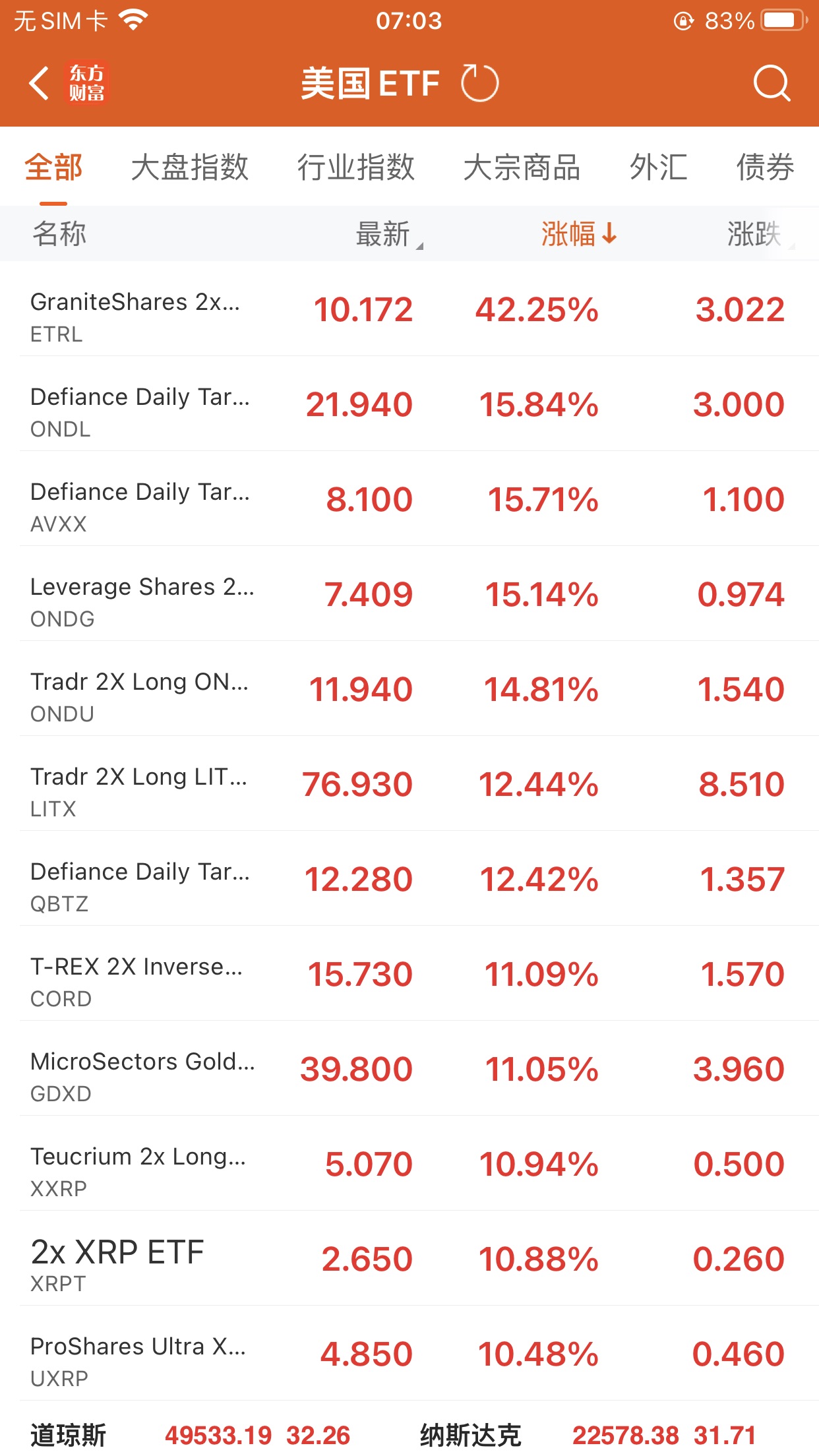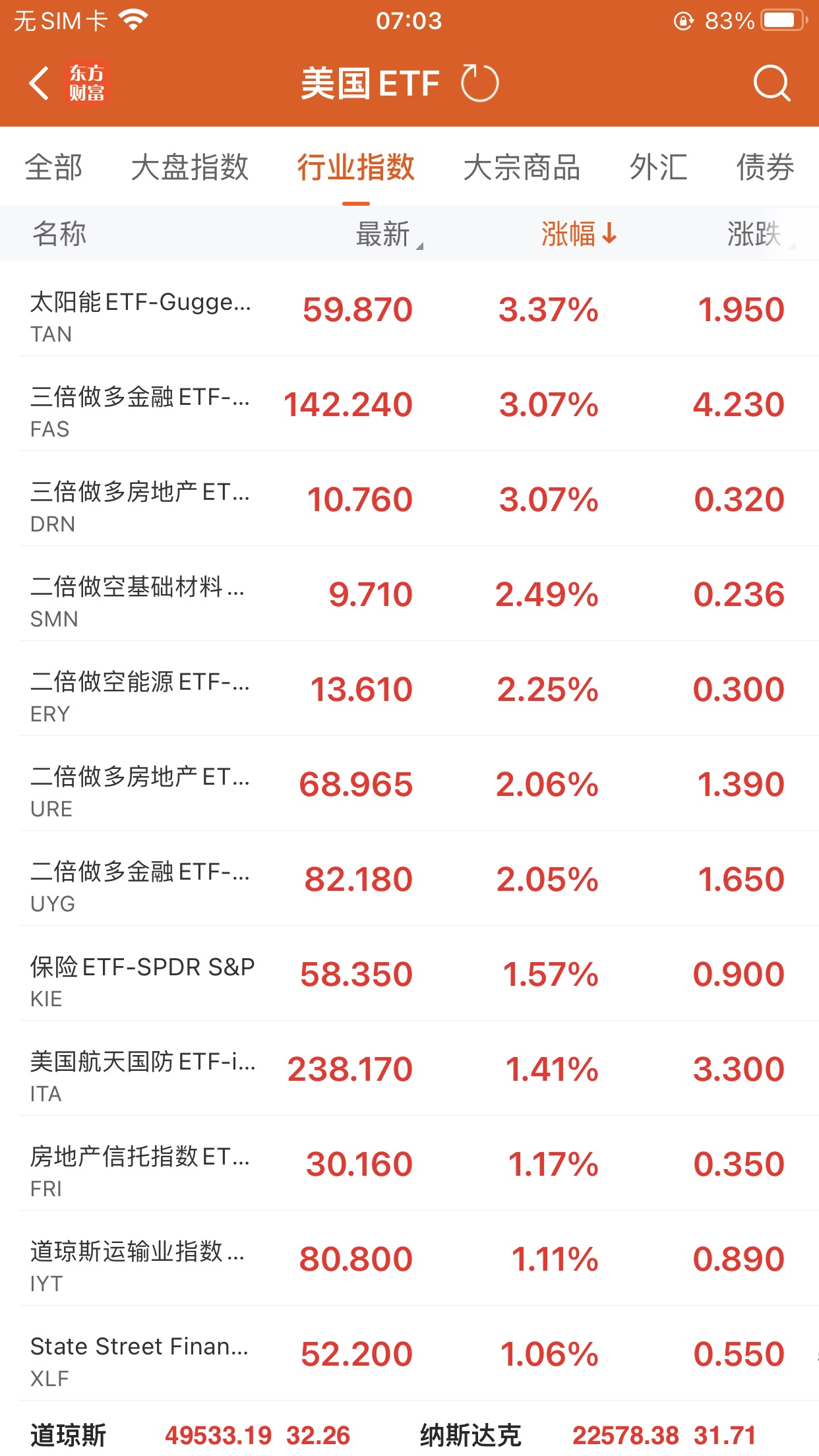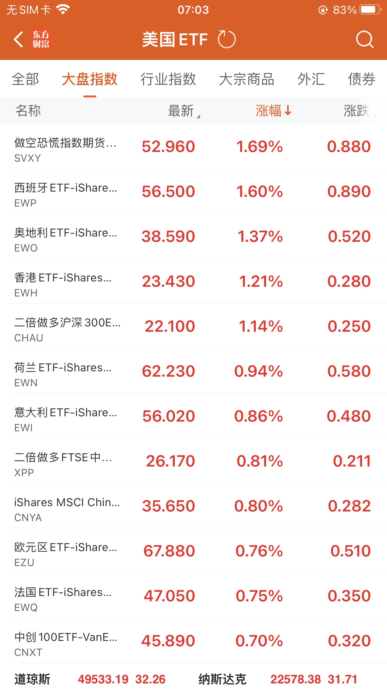 美股大型指数ETF升幅榜Top5