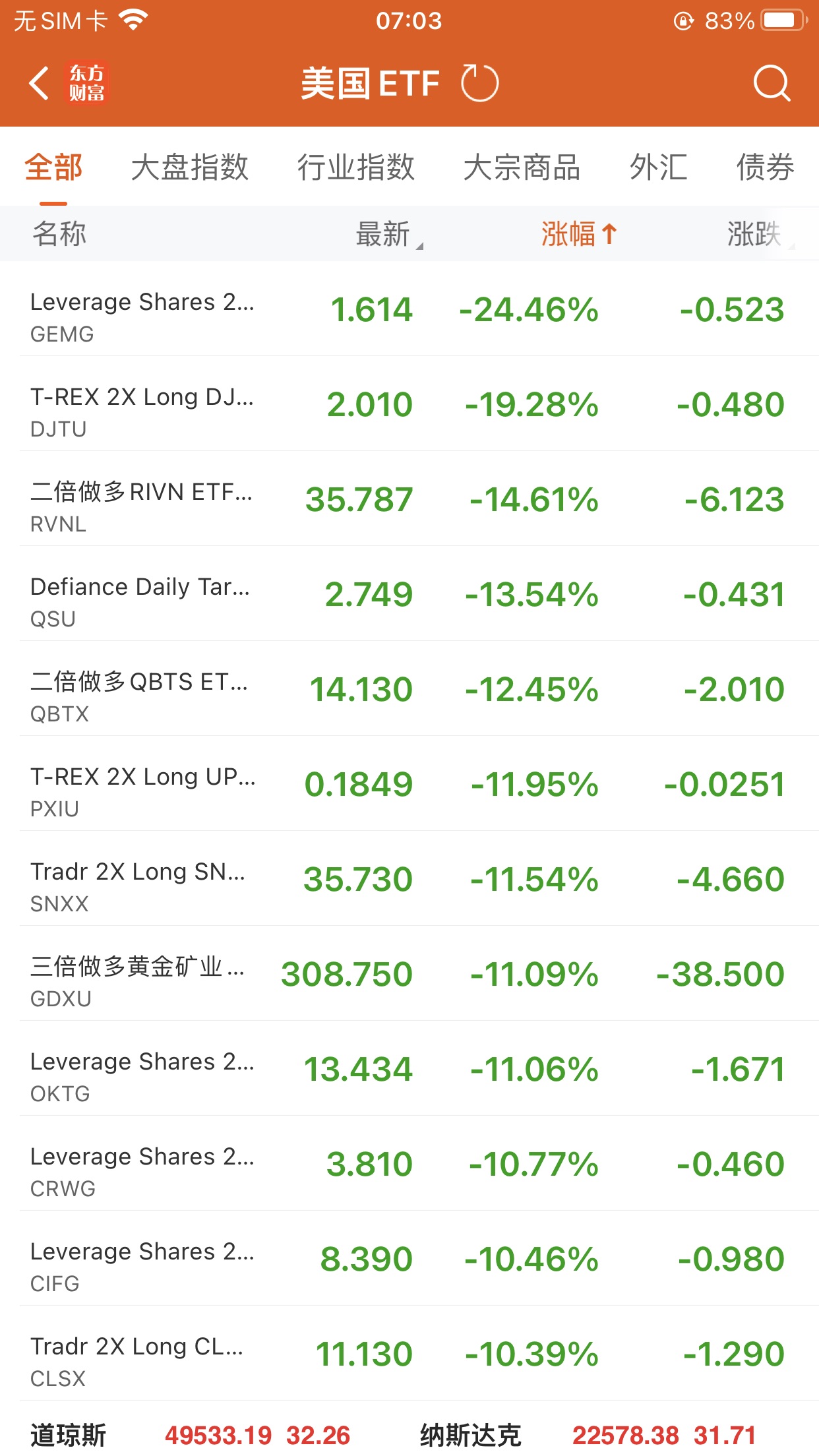 美股ETF跌幅榜Top5