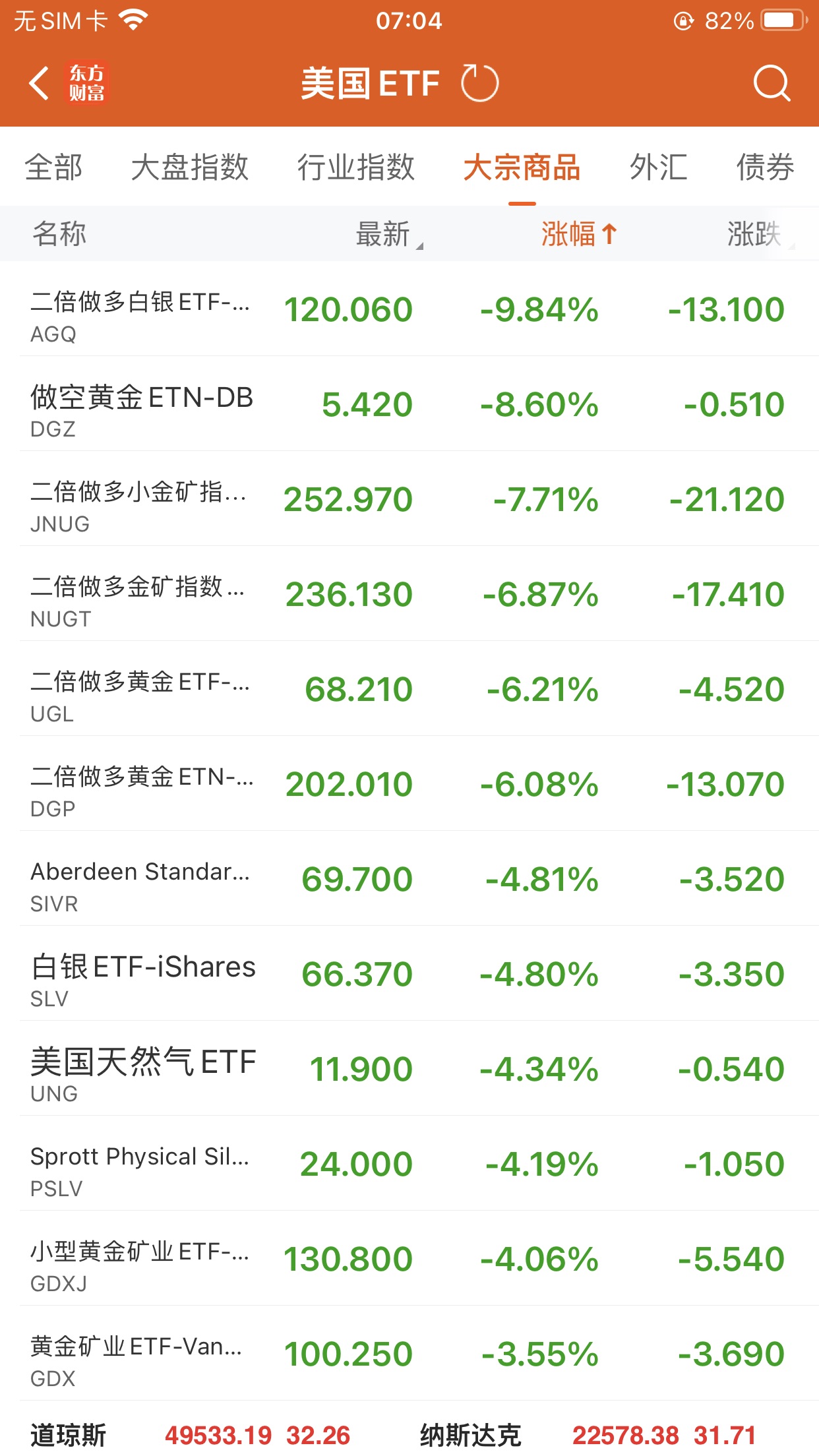 大宗商品型ETF跌幅榜Top5