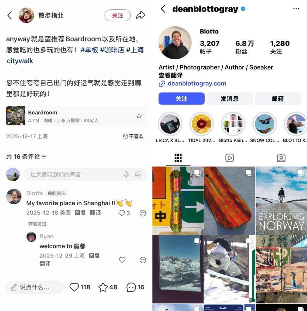 Boardroom已成为不少滑雪爱好者来沪打卡的固定一站。界面新闻注意到,有美国滑雪爱好者在相关帖子下留言称:“My favorite place in Shanghai”。