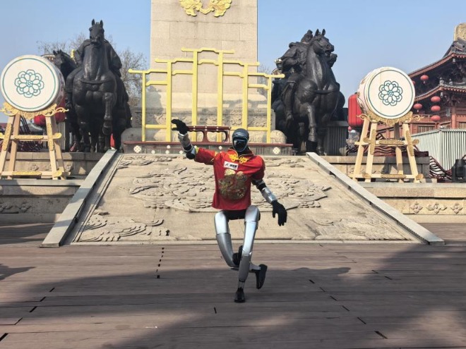 在活力全开的《大花轿》舞蹈表演中,机器人踩着喜庆舞步,憨态可掬的模样搭配精准卡点,满满新春民俗年味扑面而来;在《太极》表演里,机器人演绎太极经典招式,动作行云流水、刚柔并济,让观众们见证“机甲张三丰”的魅力。