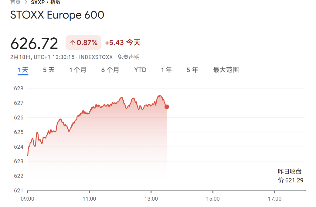 2月18日晚间,欧洲股市全线走高,受一系列积极财报提振,欧洲斯托克600指数触及历史新高。