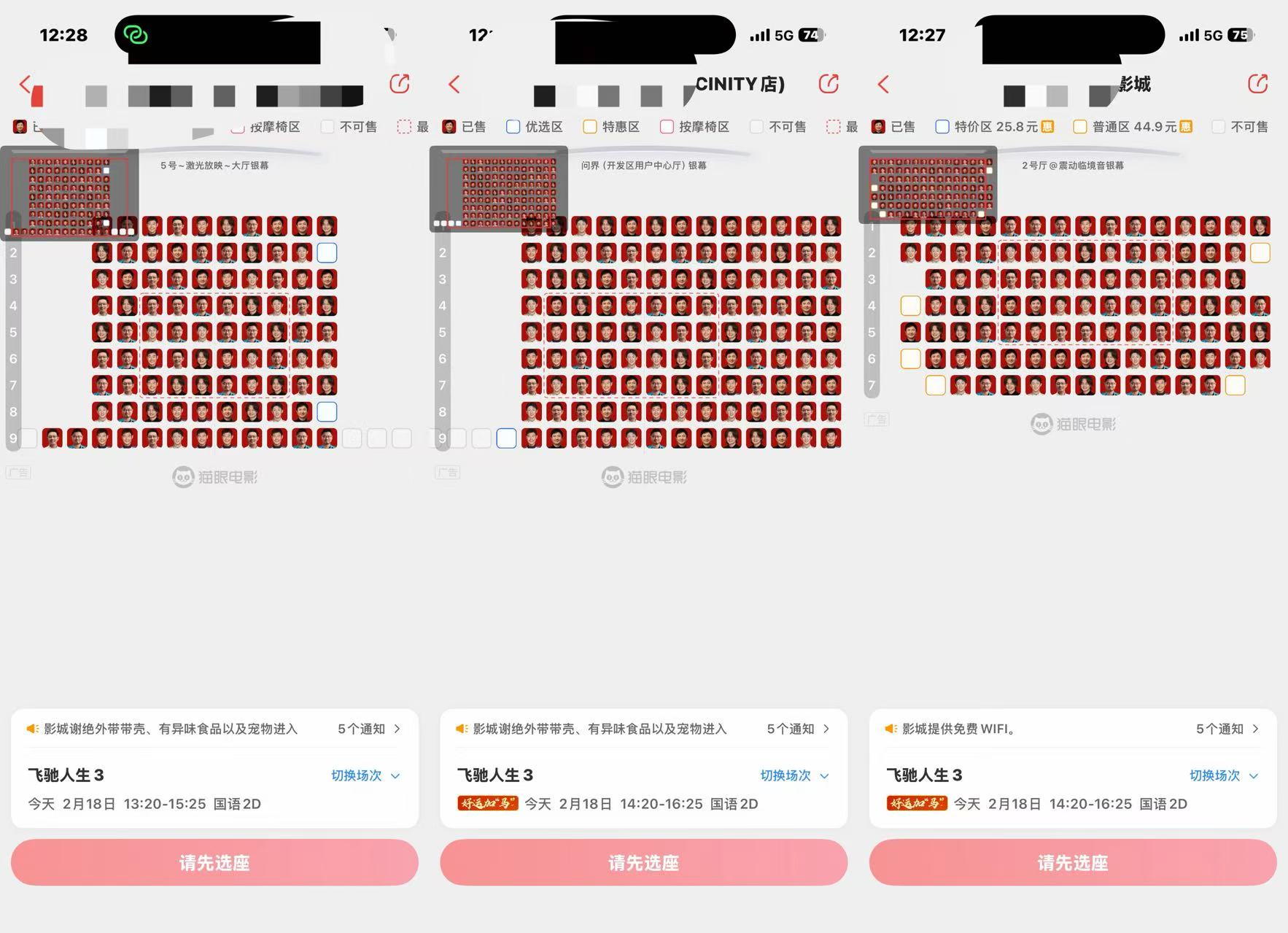 “《飞驰人生3》确实是片单里比较有优势的一部,无论是题材还是演员号召力都有,应该是不少人第一部会选择的电影”,一位资深影院经理告诉蓝鲸新闻记者。事实上,春节档战况果然如此。以蓝鲸新闻记者所在的某三线城市影院为例,《飞驰人生3》的热门场次几乎全城满座,其他时段场次也仅有部分视线不佳的零散座位空余。