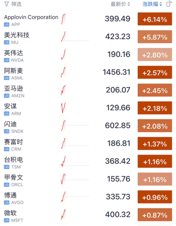 美光科技暴涨约6%,此前大卫·泰珀的阿帕卢萨资产管理公司增持了股份,持仓提升至4.28亿美元,增幅达200%,使这家AI系统关键内存芯片制造商成为该基金第四大持仓,此外,美光科技斥资2000亿美元以突破AI内存瓶颈。