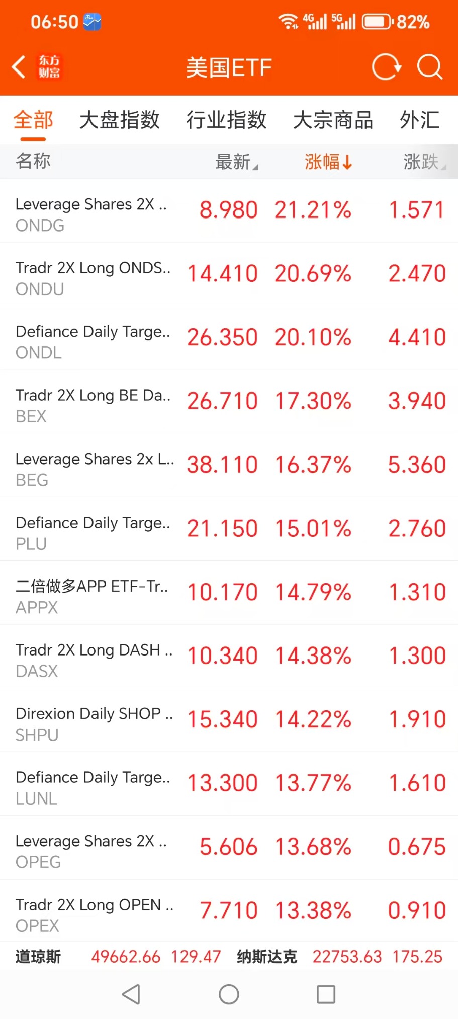 2倍做多ONDS ETF-Defiance(ONDL.US) :升 20.10%,成交额 3647.01 万美元
