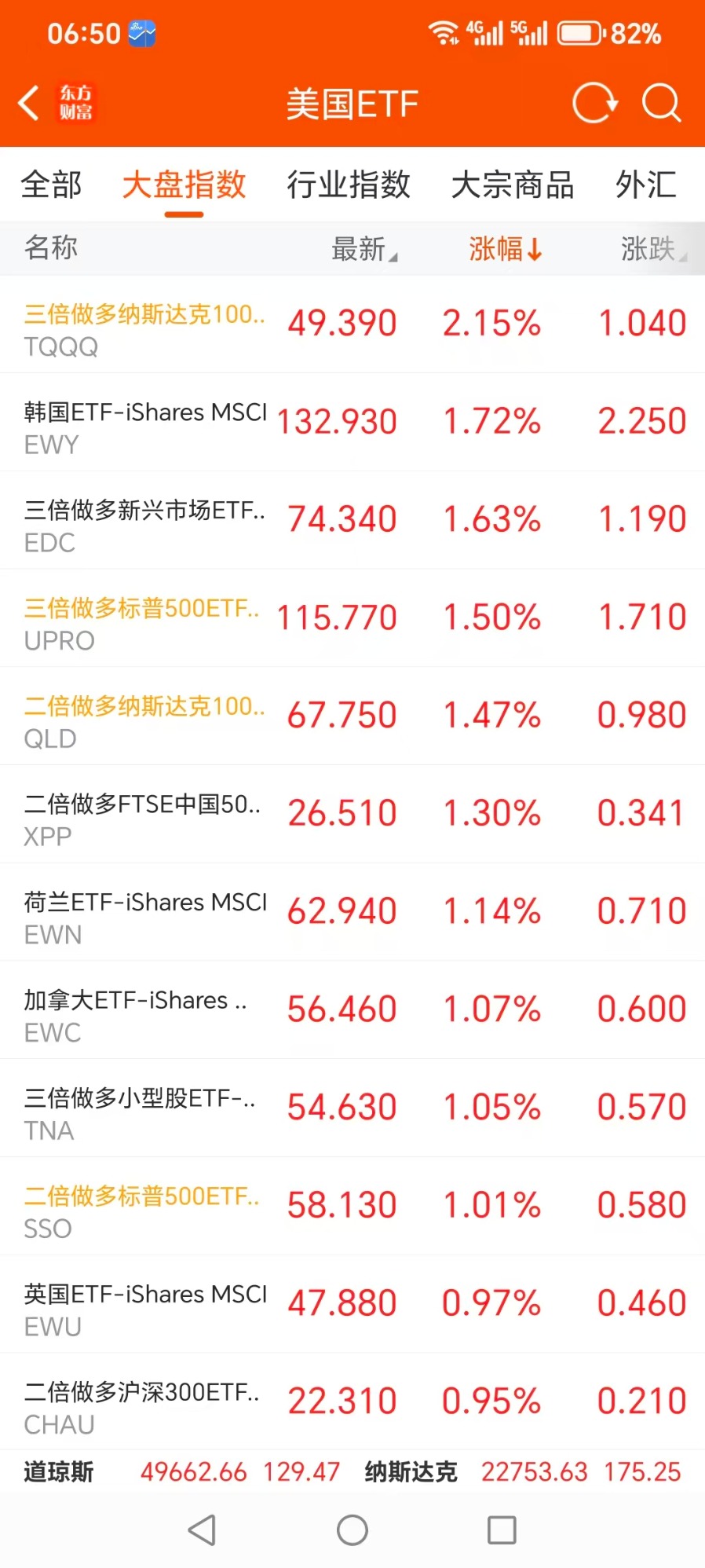 2倍做多纳斯达克100指数ETF-ProShares(QLD.US) :升 1.50%,成交额 2.54 亿美元