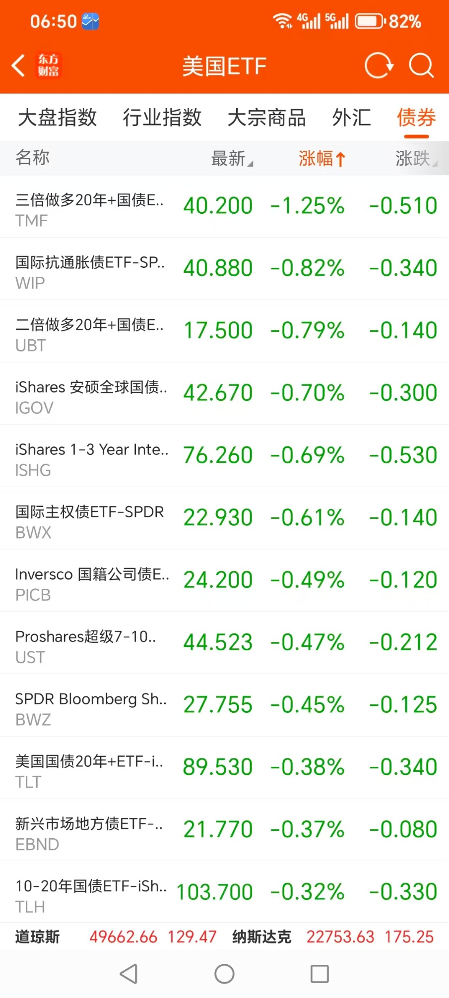 三倍做多20年期以上国债ETF-Direxion(TMF.US) :跌 1.25%,成交额 1.97 亿美元