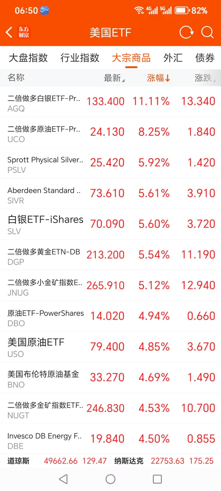 2倍做多白银ETF-ProShares(AGQ.US) :升 11.11%,成交额 5.86 亿美元