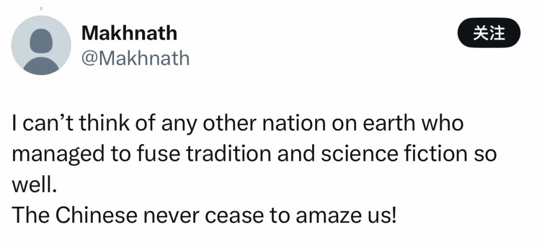 “我想不出世界上还有哪个国家能将传统与科幻融合得这么好。中国人总是让我们惊叹不已!”