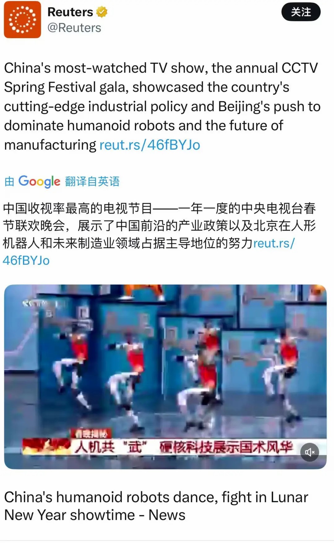 “这不仅仅是一场表演,更是一个信号。当人形机器人登上14亿观众的舞台时,未来就不再是理论上的了。”