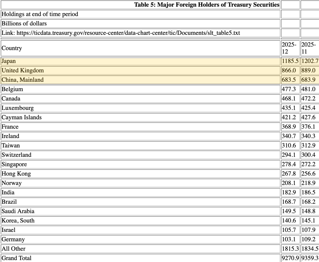 【导读】2025年12月TIC数据发布,日本、英国、中国减持美债