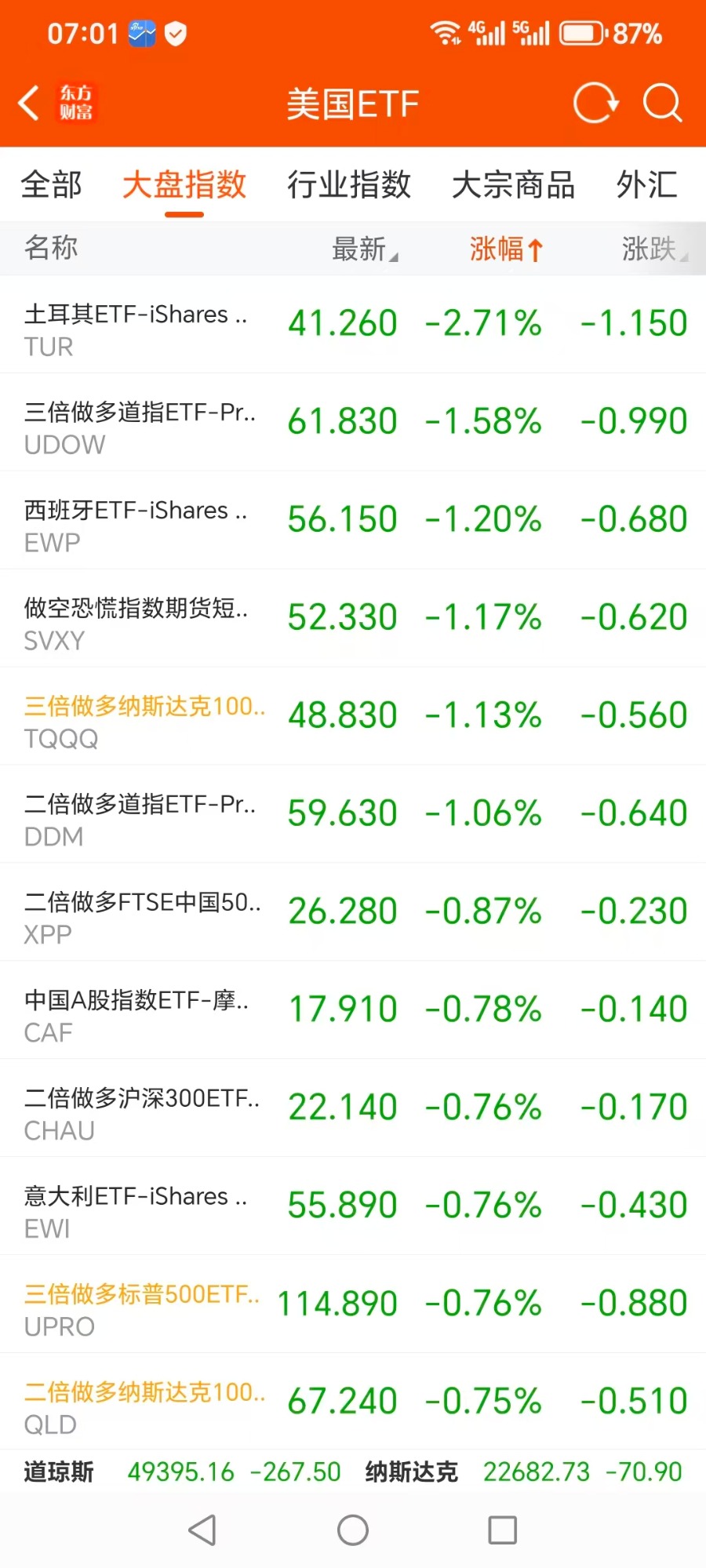 三倍做多标普500ETF-ProShares(UPRO.US) :跌 0.76%,成交额 4.13 亿美元