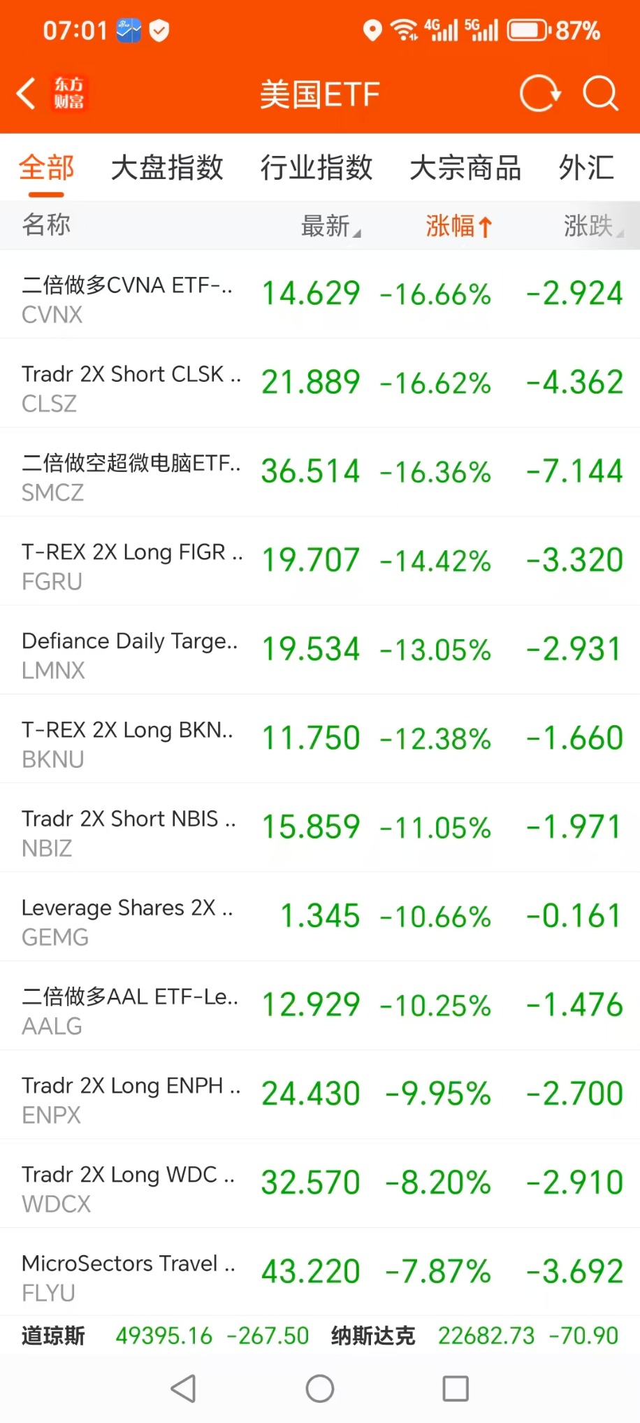 做空波动率指数短期期货ETF-ProShares(SVXY.US) :跌 1.32%,成交额 1.1 亿美元