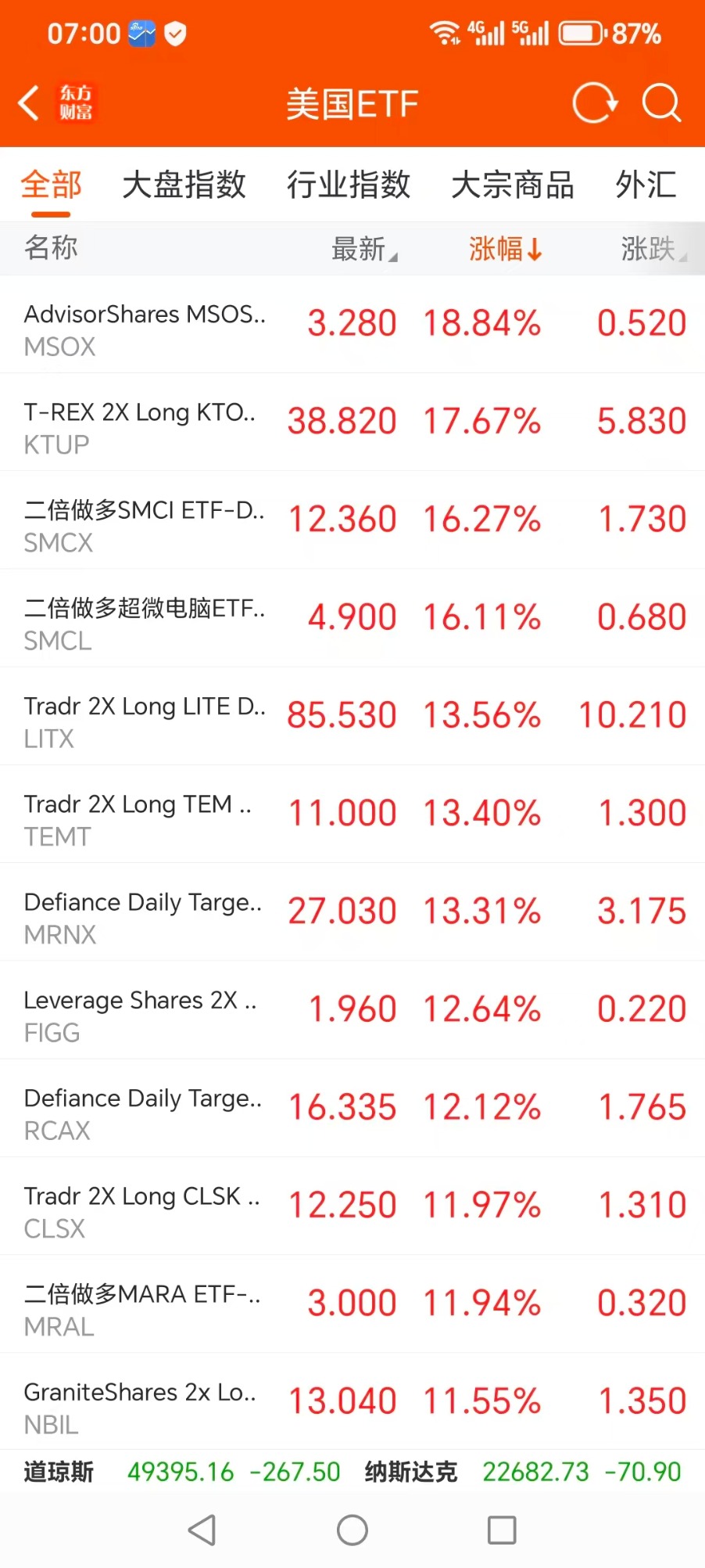 AdvisorShares MSOS Daily Leveraged ETF(MSOX.US) :升 19.20%,成交额 473.94 万美元