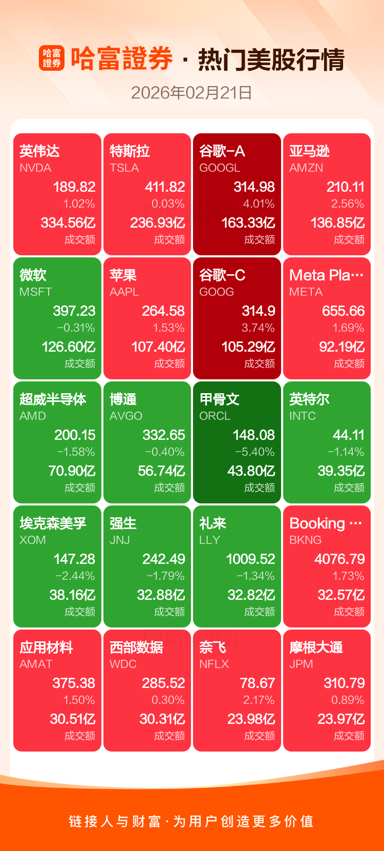 英伟达涨1.02%,特斯拉涨0.03%,谷歌-A涨4.01%,亚马逊涨2.56%,微软跌0.31%,苹果涨1.53%,谷歌-C涨3.74%,Meta Platforms Inc-A涨1.69%,超威半导体跌1.58%,博通跌0.40%。