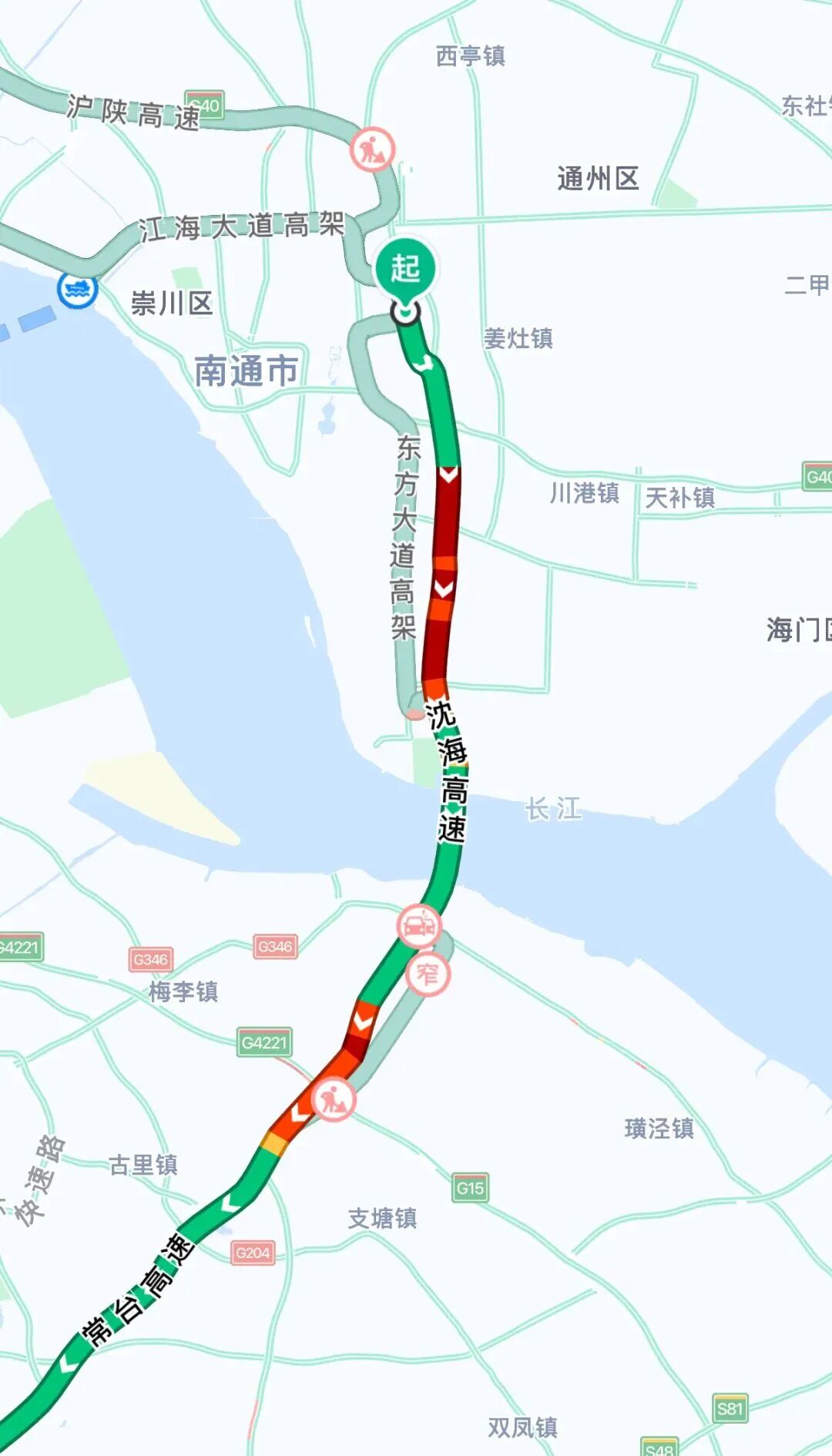 2026年2月22日10时15分,G40沪陕高速南通段由于车流量大,由南京往启东方向215K至211K离九华收费站3公里附近现场车多缓行。