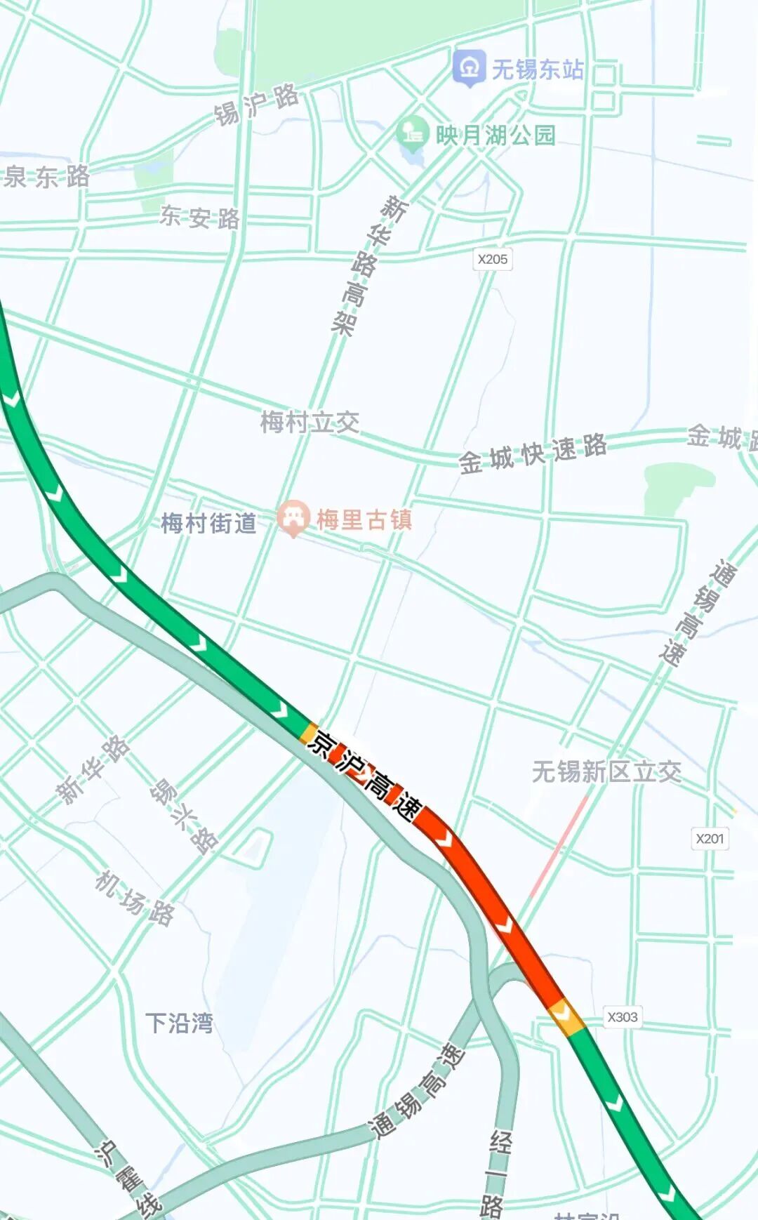 2026年2月22日9时9分,G2京沪高速泰州段由于车流量大,关闭泰兴东、泰兴北往上海方向入口。